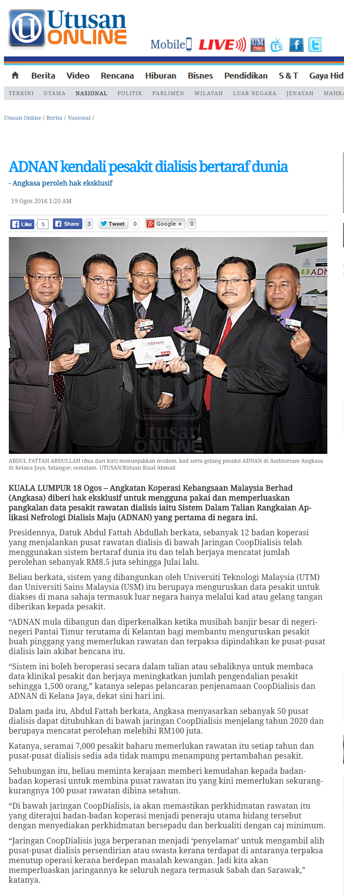ADNAN kendali pesakit dialisis bertaraf dunia